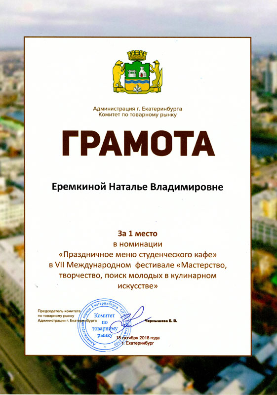 1 место в номинации «Праздничное меню студенческого кафе»