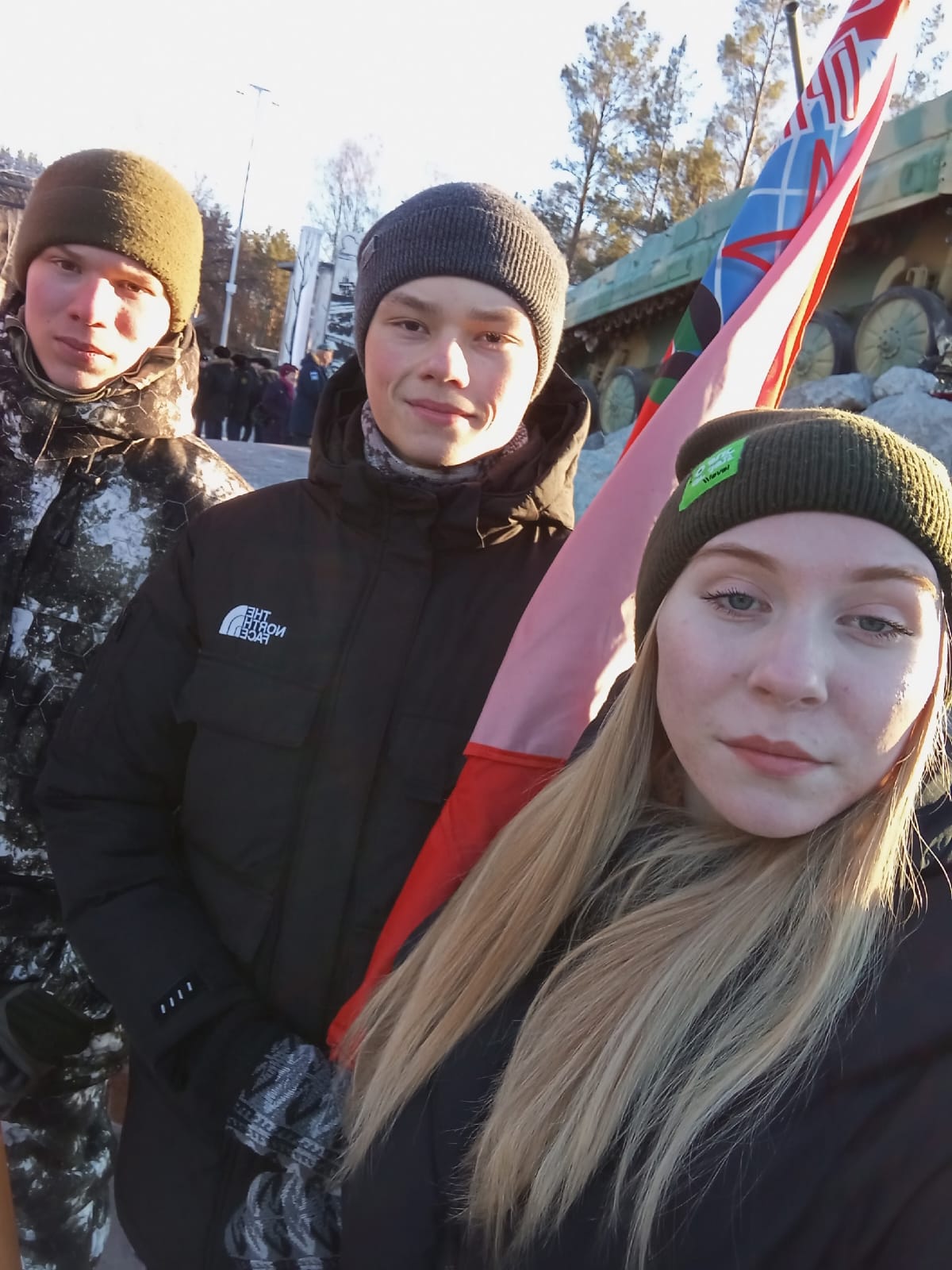 4 ноября, в День народного единства, наши будущие защитники правопорядка – студенты специальности «Правоохранительная деятельность» Черепанова Екатерина, Маслов Михаил и Мезенцев Влад – вместе с нашим уважаемым преподавателем, ветераном боевых действий, полковником в отставке Петром Иосифовичем Токаревым, приняли участие в торжественном открытии Аллеи Славы!