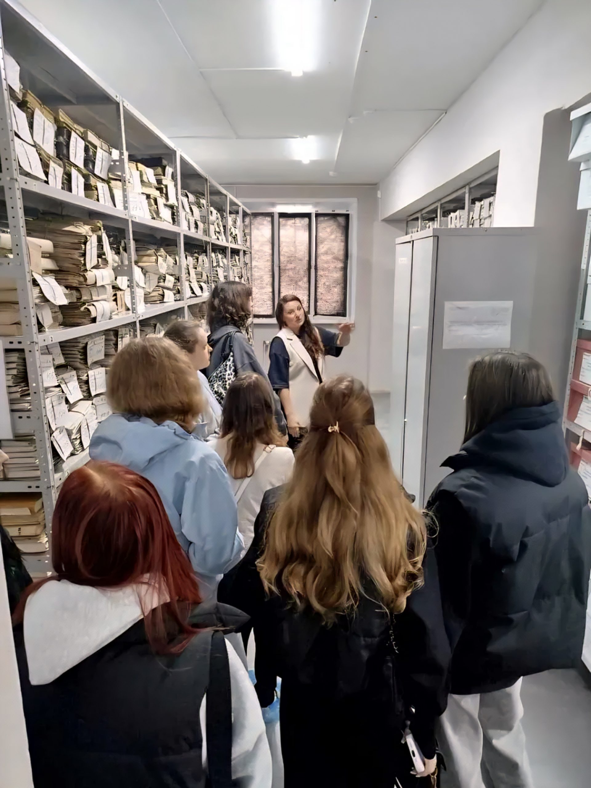 Студенты посетили архив в сопровождении своего преподавателя Юлии Борисовны Суторминой. Эта экскурсия стала для них важным шагом к формированию практических профессиональных компетенций. В завершение мероприятия участники поздравили сотрудников архива с наступающим профессиональным праздником.