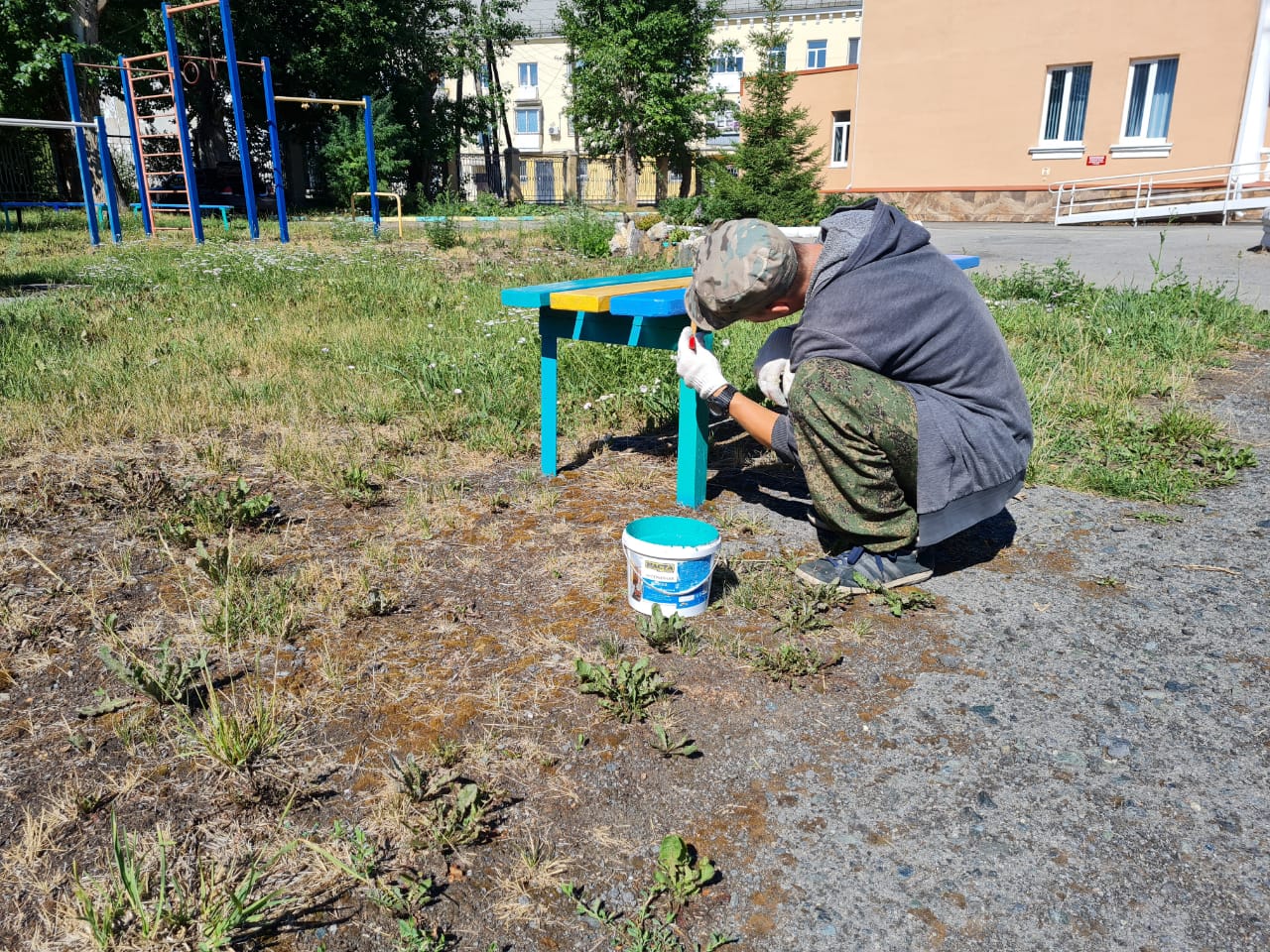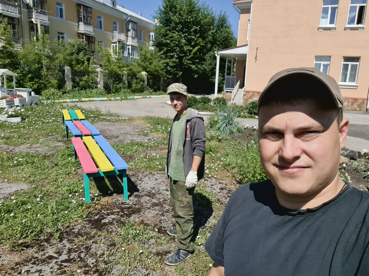 Сегодня ребята работали в Реабилитационном центре для детей и подростков с ОВЗ города Каменска-Уральского «Росток». За один день ребята покрасили в разные цвета скамейки во дворе Центра. Для этого они очистили их от старой, отслоившейся краски, от пыли и грязи, подготовили краски нужных цветов. Итог: свежие, яркие, разноцветные скамейки для воспитанников и гостей центра.