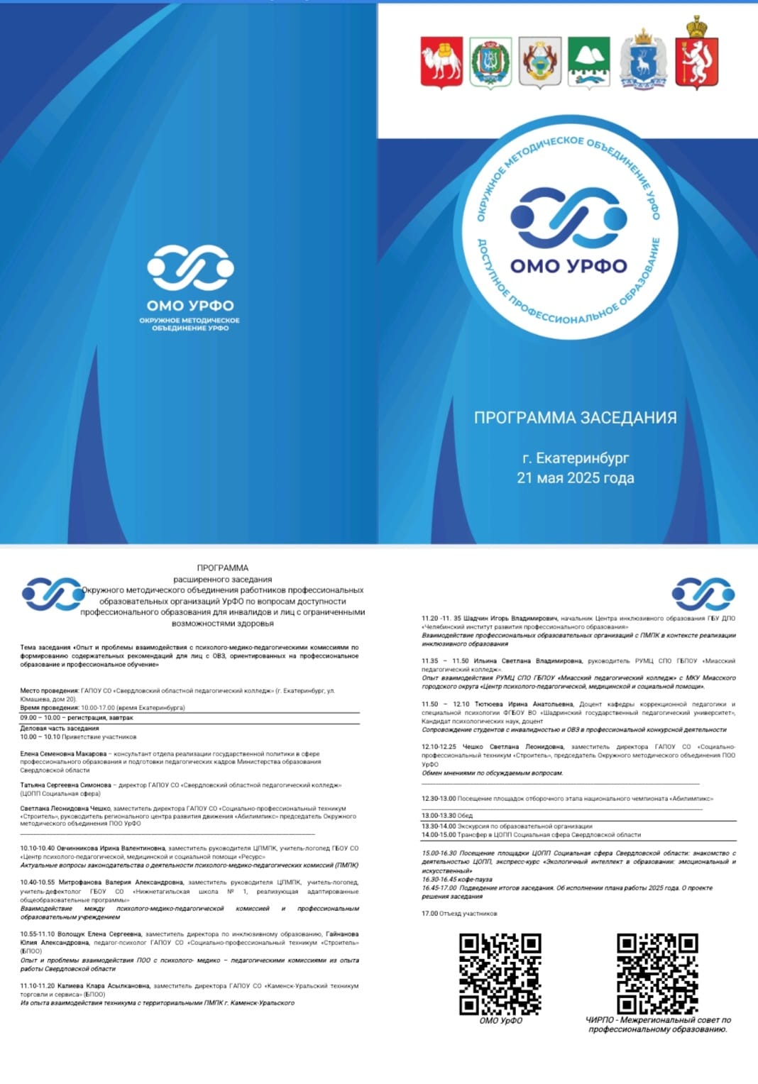 21 мая в Свердловском областном педагогическом колледже состоялось заседание Окружного методического объединения, посвященное вопросам доступности профессионального образования для инвалидов и лиц с ОВЗ.
