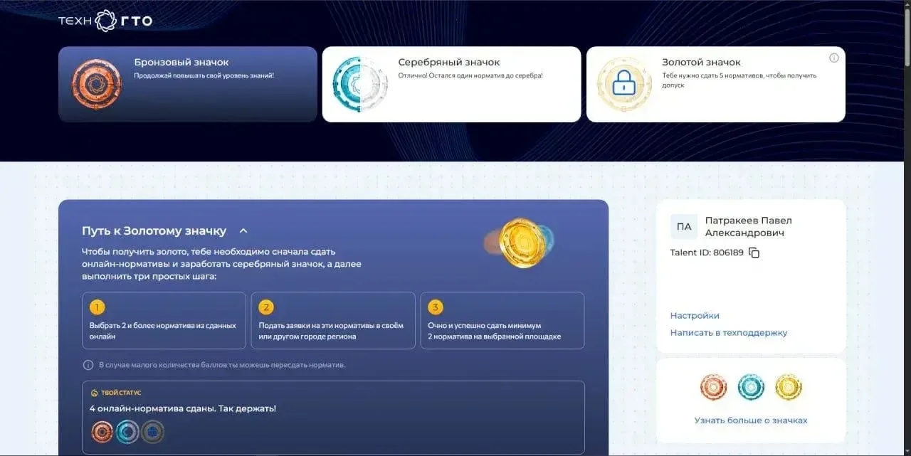 Первые результаты уже есть! Карина Степанова завоевала серебряный значок, а Павел Патракеев — бронзовый. Путь к вершине продолжается: у ребят есть все шансы получить высшую, золотую награду. Пожелаем им упорства и новых побед!