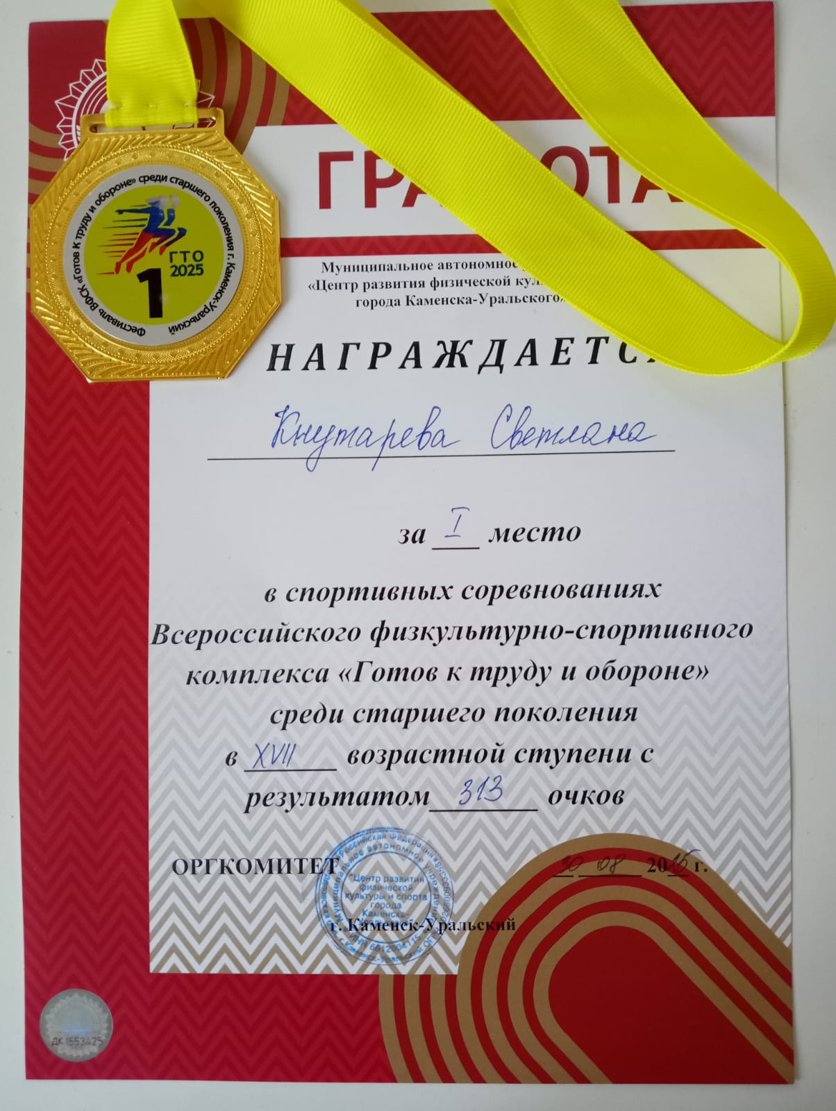 Поздравляем спортивную команду педагогов КУТТС с победой! Наши замечательные преподаватели Токарев Петр Иосифович и Кнутарева Светлана Геннадьевна приняли активное участие в соревнованиях по ГТО среди старшего поколения.