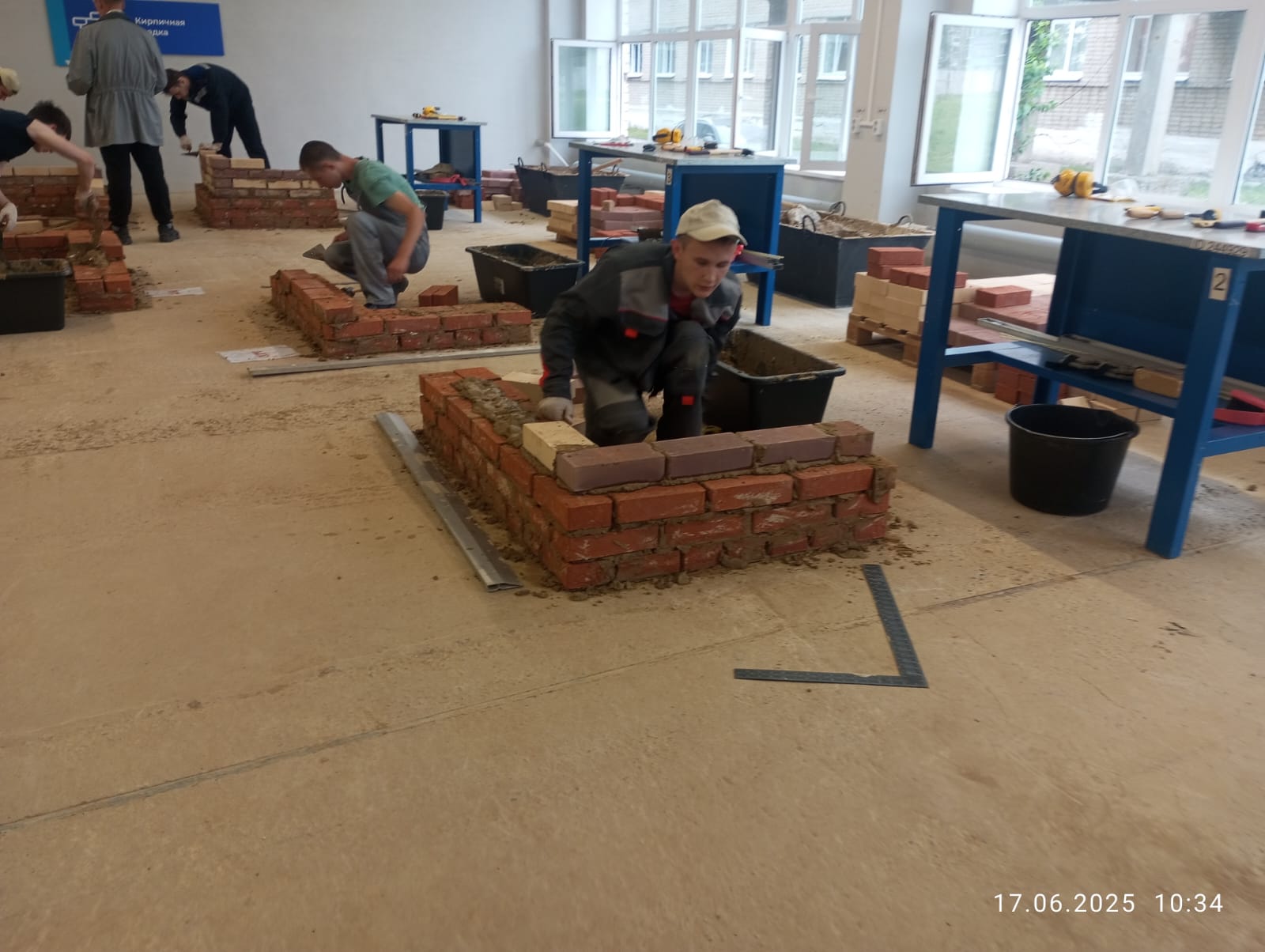 Сегодня, 17.06.2025, в группе МР-311/22 «Мастер общестроительных работ» стартовал демонстрационный экзамен по модулю «Кирпичная кладка»!