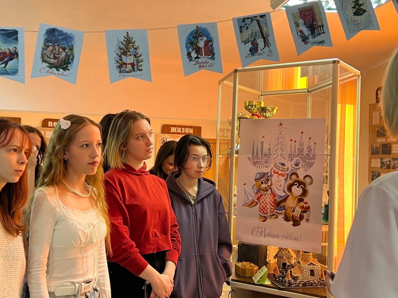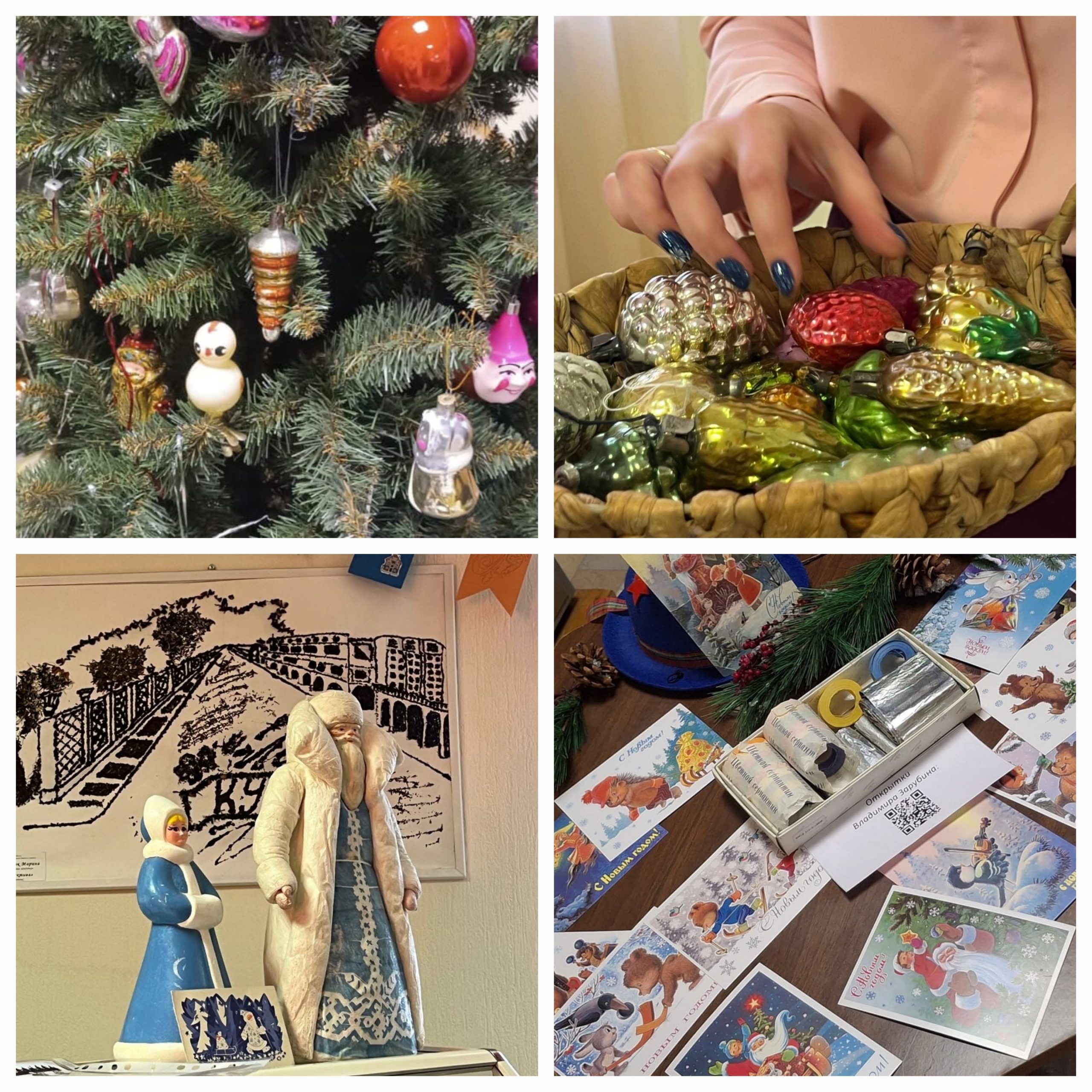 Здесь можно было увидеть старинные новогодние открытки с теплыми пожеланиями начала XX века, узнать о традициях праздника в царской России, посмотреть, как изменилось оформление елок и игрушек в Советском Союзе!