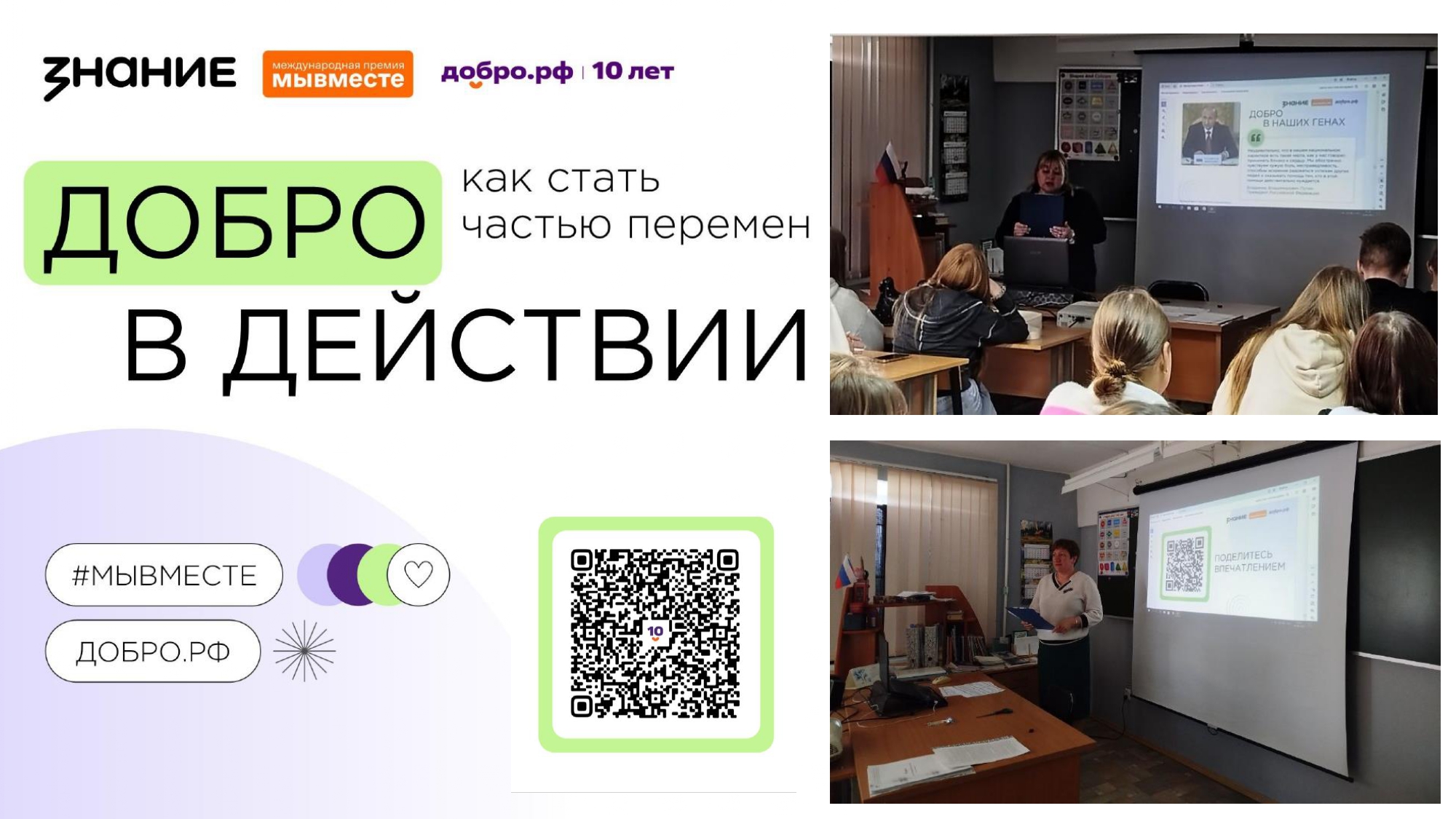 Ребята погрузились в историю волонтерства, обсудили его современные форматы и узнали о возможностях крупнейшей платформы Добро.рф.