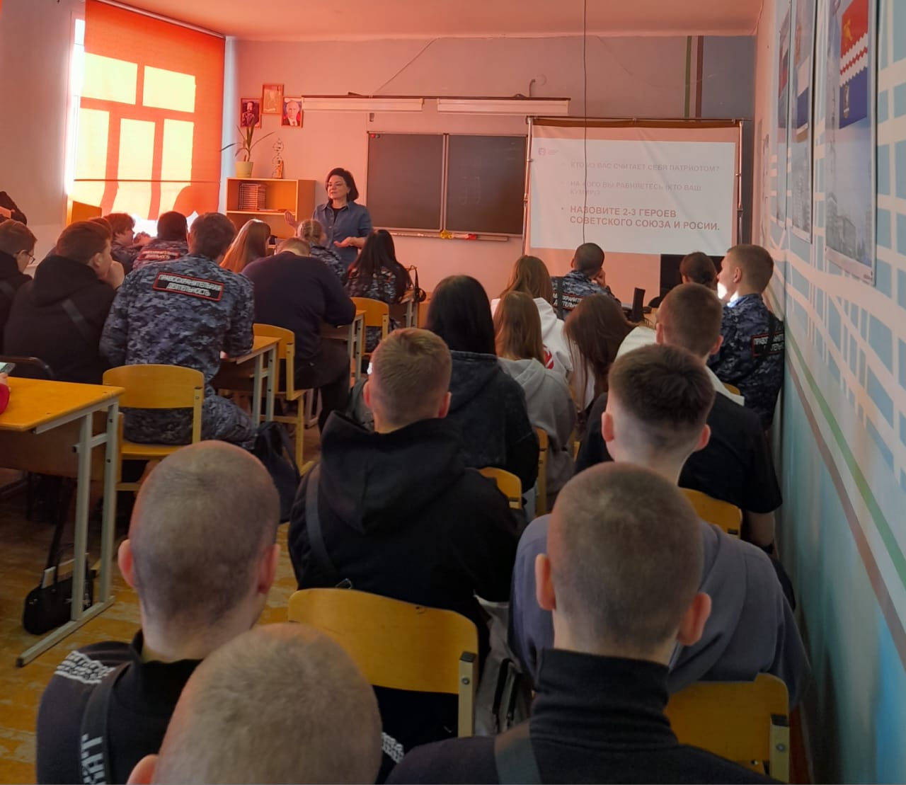Ребята активно участвовали в дискуссии, размышляли о том, кто такой настоящий патриот, вспоминали героев Советского Союза, тружеников тыла и героев современности.