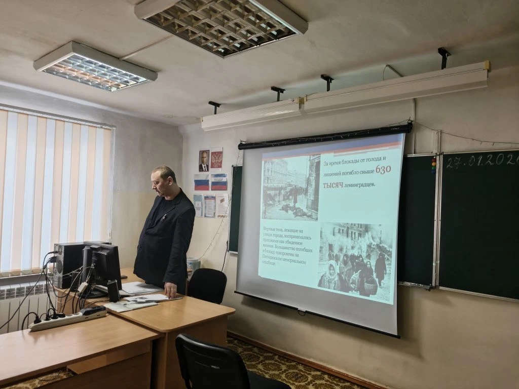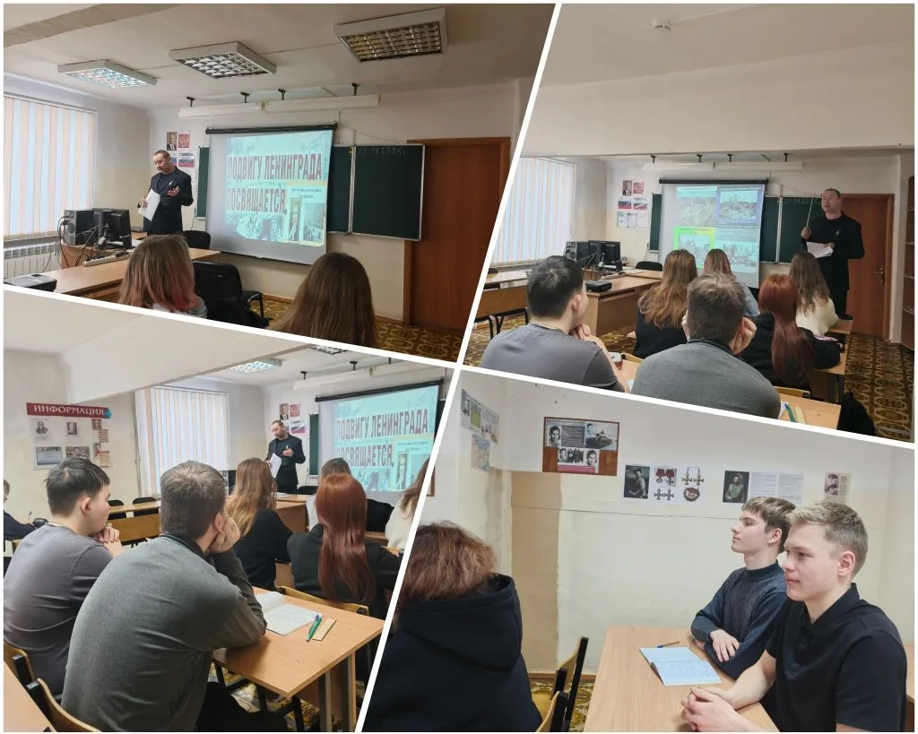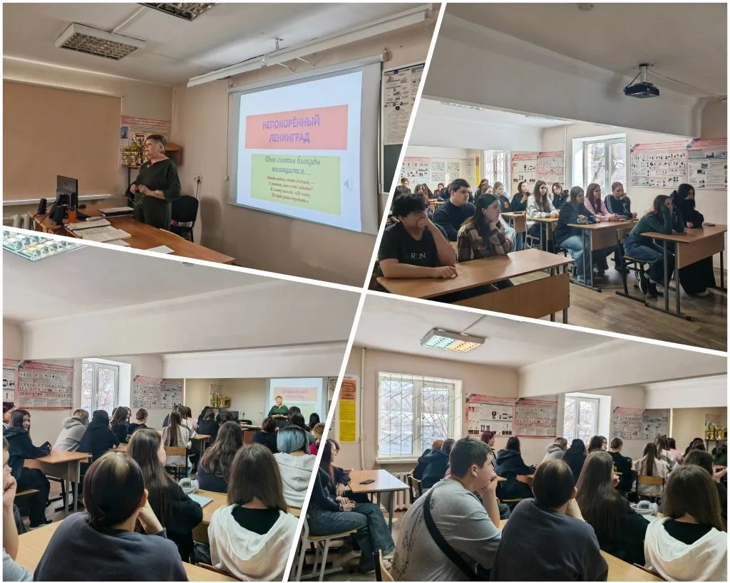 27 января в техникуме прошли уроки памяти педагоги Помазкина Галина Дмитриевна и Шепелин Иван Владимирович провели тематические уроки, также сотрудник библиотеки им. Маршака совместно с советником по воспитанию Кулик Галиной Анатольевной провели мероприятие «Непокоренный Ленинград» и ребята останавливались возле выставки «Свечи Ленинграда».