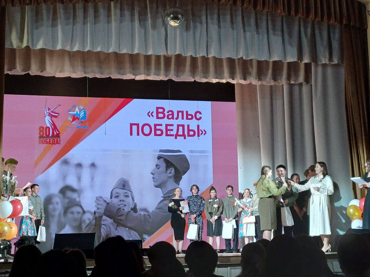 Под звуки музыки военных лет Екатерина Черепанова, группа ПД-207 и Юрий Мамин, группа ПД-127 закружились в вальсе, словно перенеся нас всех в те героические времена. Их грация и искренность напомнили: память о подвигах предков жива в каждом из нас.
