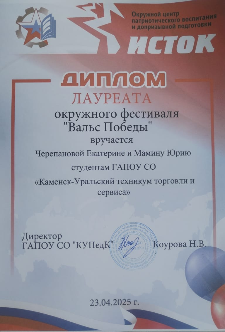 Сегодня сердце Каменск-Уральского билось в ритме истории! Студенты специальности «Правоохранительная деятельность» стали частью незабываемого события — трогательного патриотического мероприятия «Вальс Победы», посвящённого 80-летию Великой Победы.