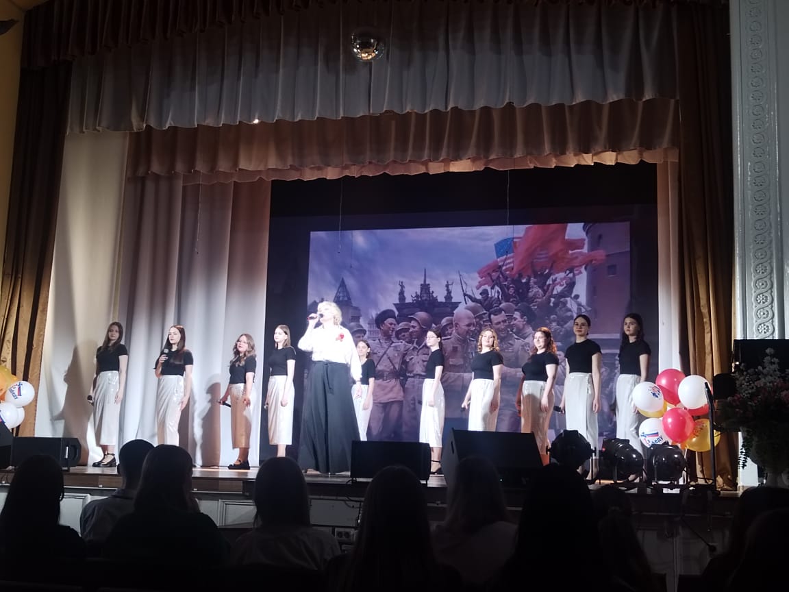 Атмосфера зала наполнилась стихами о войне, знакомыми каждому с детства мелодиями «Катюши» и «Синего платочка».
