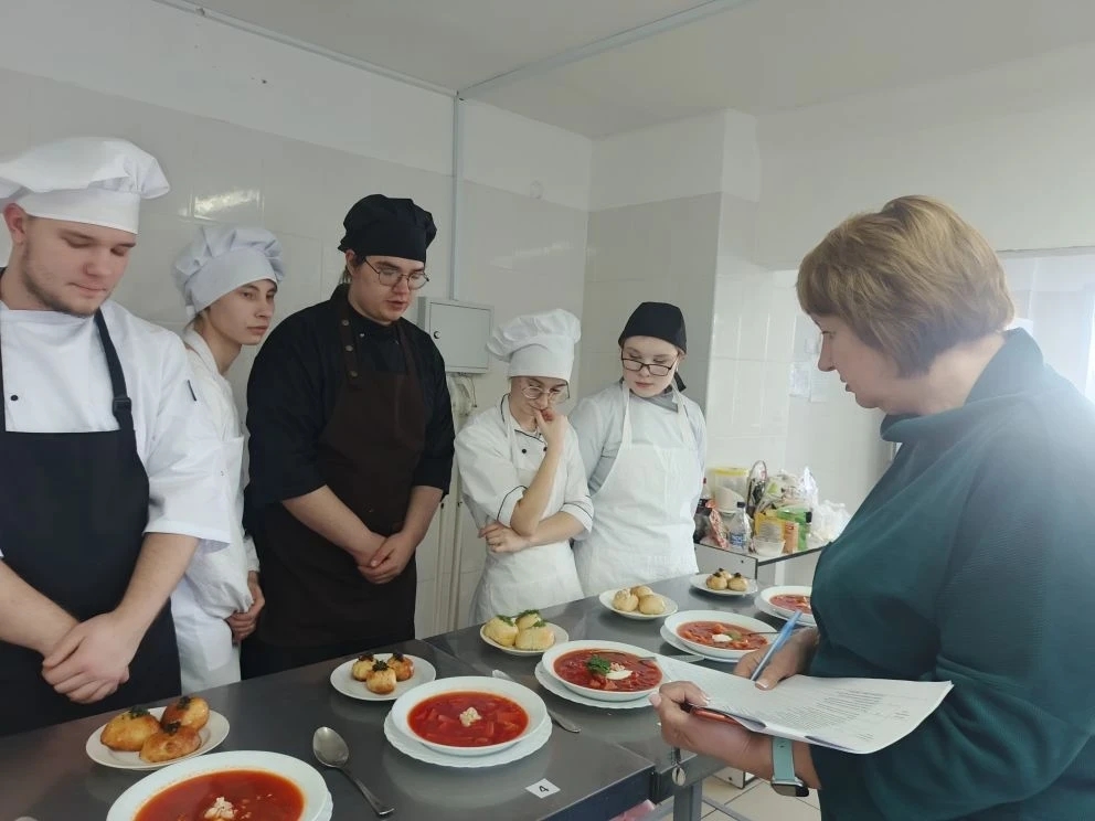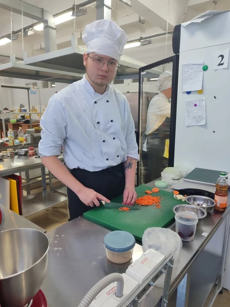 12 января 2026 года начались испытания по компетенции «Поварское дело». Студенты выполняли сложное задание по стандартам чемпионата: в течение нескольких часов они демонстрировали навыки нарезки, тепловой обработки и художественной подачи блюд.