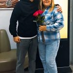 Также поздравить куратора пришёл выпускник 2022 года Георгий Рулев. Окончив техникум по профессии «Каменщик», он успешно работает по смежной специальности — рабочим по комплексному обслуживанию и ремонту зданий.